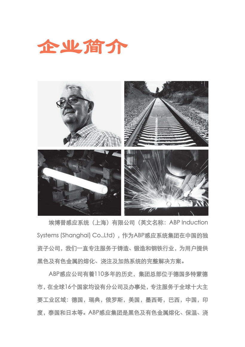 埃博普感應系統(tǒng)(上海)有限公司(英文名稱:ABP Induction Systems (Shanghai) Co.,Ltd),作為ABP感應系統(tǒng)集團在中國的獨資子公司,我們一直專注服務于鑄造、鍛造和鋼鐵行業(yè),為用戶提供黑色及有色金屬的熔化、澆注及加熱系統(tǒng)的完整解決方案。