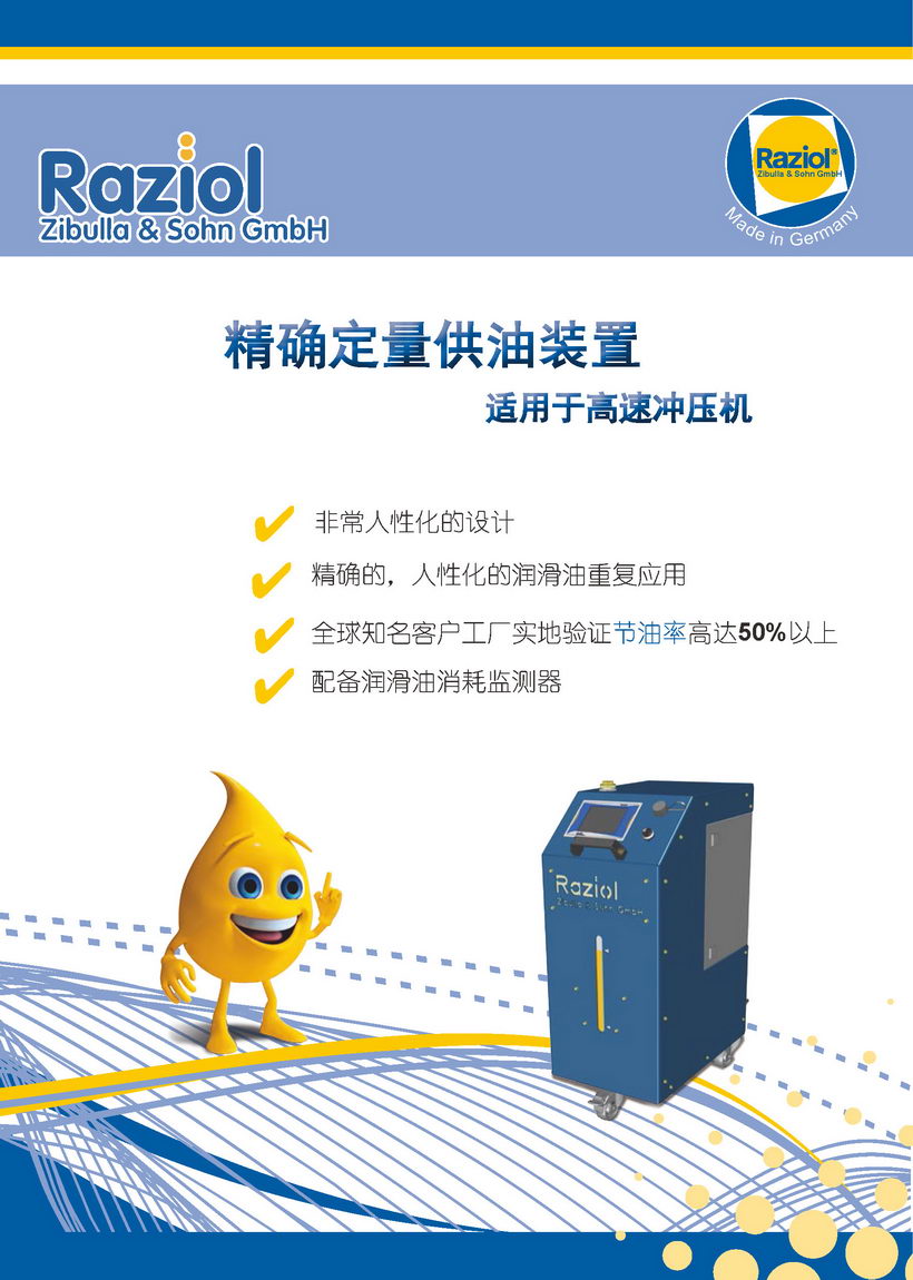 "歐茲機械科技(蘇州)有限公司"是目前是德國Raziol潤滑系統(tǒng)在中國的總代理,在金屬成形潤滑領域行業(yè)內屬于尖端產品,所銷售的產品遍布化工,電力,水力,工業(yè)自動化,模具制造,汽車制造及各個工業(yè)領域,是提供各類制造企業(yè),貿易商,使用人生產制造潤滑系統(tǒng)解決方案的綜合型銷售供應服務商。