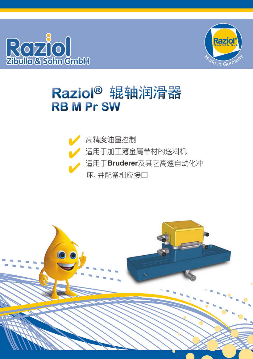 "歐茲機械科技(蘇州)有限公司"是目前是德國Raziol潤滑系統(tǒng)在中國的總代理,在金屬成形潤滑領域行業(yè)內(nèi)屬于尖端產(chǎn)品,所銷售的產(chǎn)品遍布化工,電力,水力,工業(yè)自動化,模具制造,汽車制造及各個工業(yè)領域,是提供各類制造企業(yè),貿(mào)易商,使用人生產(chǎn)制造潤滑系統(tǒng)解決方案的綜合型銷售供應服務商。