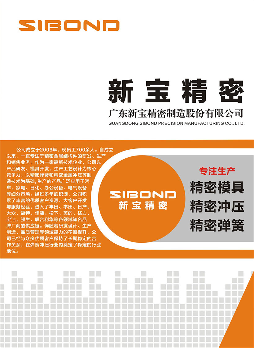 公司成立于2003年,自成立以來,一直專注于精密金屬結(jié)構(gòu)件的研發(fā)、生產(chǎn)和銷售業(yè)務(wù)。作為一家高新技術(shù)企業(yè),公司以產(chǎn)品研發(fā)、模具開發(fā)、生產(chǎn)工藝設(shè)計為核心競爭力,以精密彈簧和精密金屬沖壓等制造技術(shù)為基礎(chǔ),生產(chǎn)的產(chǎn)品廣泛應(yīng)用于汽車、家電、日化、辦公設(shè)備、電氣設(shè)備等細分市場。經(jīng)過多年的積淀,公司積累了豐富的優(yōu)質(zhì)客戶資源、大客戶開發(fā)與服務(wù)經(jīng)驗,進入了豐田、本田、日產(chǎn)、大眾、福特、佳能、松下、美的、格力、寶潔、強生、聯(lián)合利華等各領(lǐng)域知名品牌廠商的供應(yīng)鏈。伴隨著研發(fā)設(shè)計、生產(chǎn)制造、品質(zhì)管理等領(lǐng)域能力的不斷提升,公司已經(jīng)與眾多優(yōu)質(zhì)客戶保持了長期穩(wěn)定的合作關(guān)系,在彈簧沖壓行業(yè)內(nèi)奠定了穩(wěn)定的行業(yè)地位。