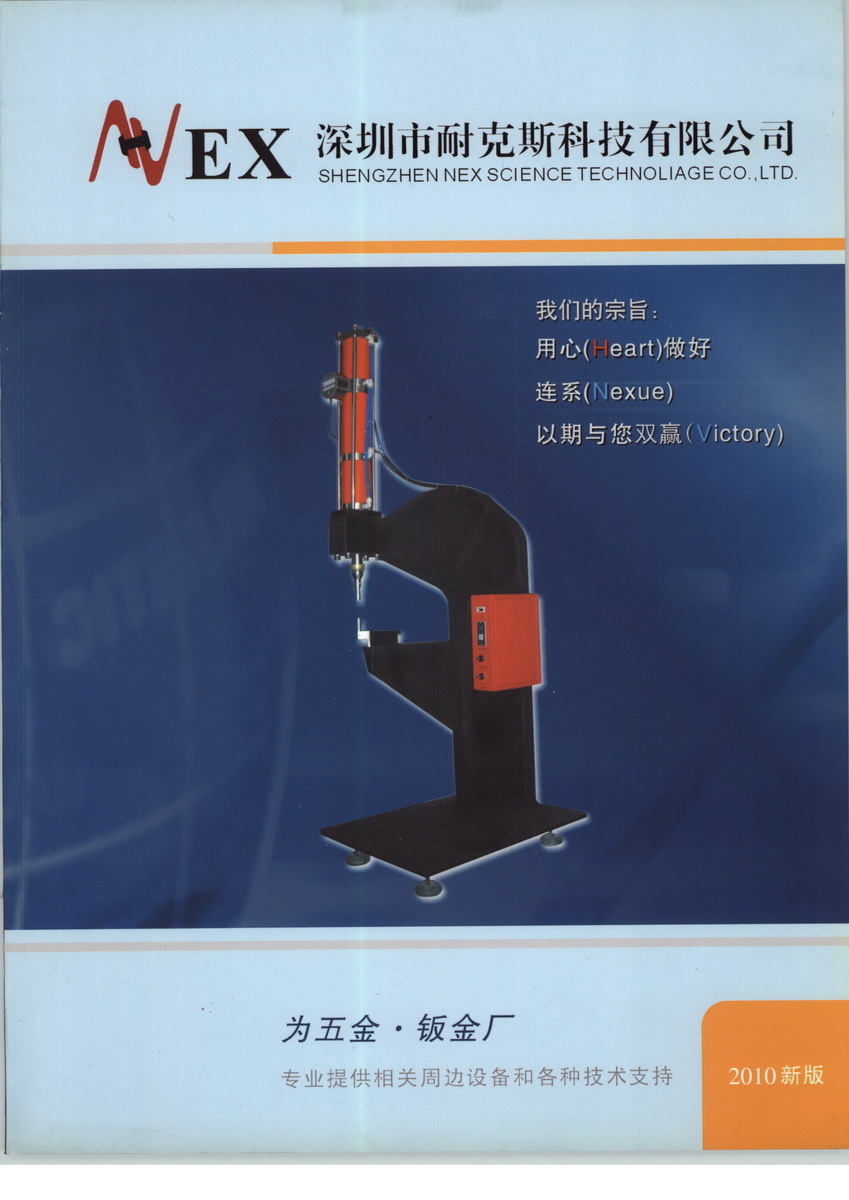深圳市耐克斯科技有限公司由日本光榮通商株式會(huì)社提供技術(shù)和資金支持的、專業(yè)從事機(jī)電產(chǎn)品研發(fā)和制作、集技開發(fā)、生產(chǎn)、貿(mào)易于一體的高技術(shù)含量的民營企業(yè)。耐克斯以技術(shù)創(chuàng)新為宗旨,以向五金加工企業(yè)提供各種技術(shù)服務(wù)為經(jīng)營方向,著重于實(shí)用、高效、節(jié)能、高品質(zhì)的加工設(shè)施的研制,并極力向國人推廣世界各種先進(jìn)機(jī)械加工技術(shù),目前已開發(fā)的產(chǎn)品有螺栓螺母壓裝機(jī)(即壓鉚機(jī))氣液增力缸、氣動(dòng)高速?zèng)_床、數(shù)控折彎機(jī)、精密壓裝機(jī)等多系列產(chǎn)品。