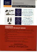 中泰儀表閥門有限公司坐落在中國機(jī)械之鄉(xiāng)--江蘇建湖,是由新加坡投資商在中國境內(nèi)投資建設(shè)的現(xiàn)代化儀表閥門生產(chǎn)型企業(yè),公司技術(shù)力量、生產(chǎn)工藝、制造設(shè)備、檢測手段都已達(dá)到國際先進(jìn)水準(zhǔn)。 公司主要產(chǎn)品有各種內(nèi)螺紋連接、外螺紋連接、卡套式連接、對焊式連接、承插焊連接、法蘭式連接的高溫高壓截止閥、工藝閥﹑二、三、五閥組,儀表針閥、球閥、止回閥等產(chǎn)品,廣泛應(yīng)用于電力、石油、化工、冶金、航空航天、軍事、制藥等自控管路系統(tǒng)中。公司已通過ISO90001:2000質(zhì)量體系認(rèn)證及USACECC認(rèn)證,被中國機(jī)械工業(yè)部壓力儀表產(chǎn)品質(zhì)量監(jiān)督檢測中心認(rèn)定為合格產(chǎn)品,并獲得中國國電公司電站配件進(jìn)網(wǎng)許可。 公司自創(chuàng)辦以來,產(chǎn)品暢銷國內(nèi),遠(yuǎn)銷美國、歐洲、東南亞等國家地區(qū)。在各國各大城市均設(shè)有辦事處及售后服務(wù)機(jī)構(gòu)。本公司引進(jìn)了德國先進(jìn)的生產(chǎn)工藝和機(jī)械設(shè)備,配備有沈陽第一機(jī)床廠的高精度數(shù)控車床,精湛的檢測設(shè)備十分完善,可靠的質(zhì)量保證和公司訓(xùn)練有素的員工隊伍,為您購買TaiKS系列產(chǎn)品提供完善的優(yōu)質(zhì)的服務(wù)。我們愿與中外客商,新老客戶攜手共進(jìn),共創(chuàng)事業(yè)的輝煌!