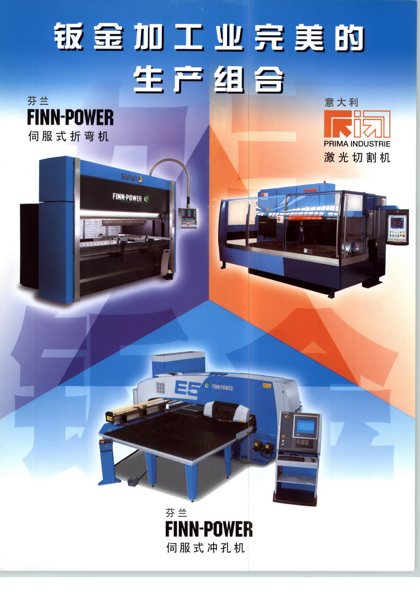 Prima Power,專業(yè)鈑金加工機械設備名牌,是香港力豐鈑金機械有限公司 (力豐集團子公司) 主力代銷旗艦產品。力豐鈑金早于1992年開始代理Finn-Power 產品;盡管當時市場以日本品牌為主,對于占地較大面積, 價格相對較高而不易被接受。以歐洲工業(yè)發(fā)展為籃圖,同時意識到中國經濟急速發(fā)展,人力資源不可能長期處于低水平及廉價勞工;未來市場理應步向歐洲模式,傾向自然化、高效率和更現(xiàn)代化管理,開展與 Finn-Power長久合作之路,并在數年間證實理念正確。國內很多知名企業(yè),以 ABB為例,引進自動化柔性設備后,配合整合內部優(yōu)良的管理制度,生產速率及效益大幅提升,廢材減少,庫存保持低水平,人力資源得已善用;而配合產量增加,在原有 Finn-Power柔性在線擴充,按年增加Prima Power 更先進設備。