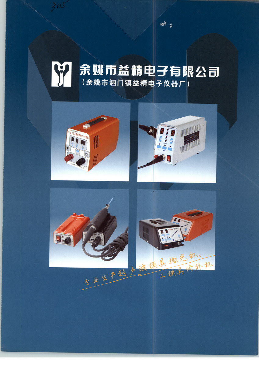 余姚市益精電子有限公司(前身余姚市泗門鎮(zhèn)益精電子儀器廠)成立于1991,已有二十年生產(chǎn)超聲波模具拋光機、電子打光機、工模具修補機、冷焊機、鑄造缺陷修補機等設(shè)備的專業(yè)經(jīng)驗。 “產(chǎn)品更精,服務(wù)更好”是我公司的一貫宗旨。多年來,我們一直堅持穩(wěn)扎穩(wěn)打、誠信經(jīng)營,贏得了越來越多的新老客戶的支持?,F(xiàn)在的益精電子,擁有多項發(fā)明專利和實用新型專利,已累計獨立研發(fā)YJCS超聲波模具拋光機/YJXB工模具修補機/YJHB高能精密焊補機等三大系列十余款產(chǎn)品。在模具精拋光、精密工件/模具修補、大型鑄造件/機床部件特種修復(fù)等領(lǐng)域,都樹立了良好的口碑,獲得廣大用戶的認可。