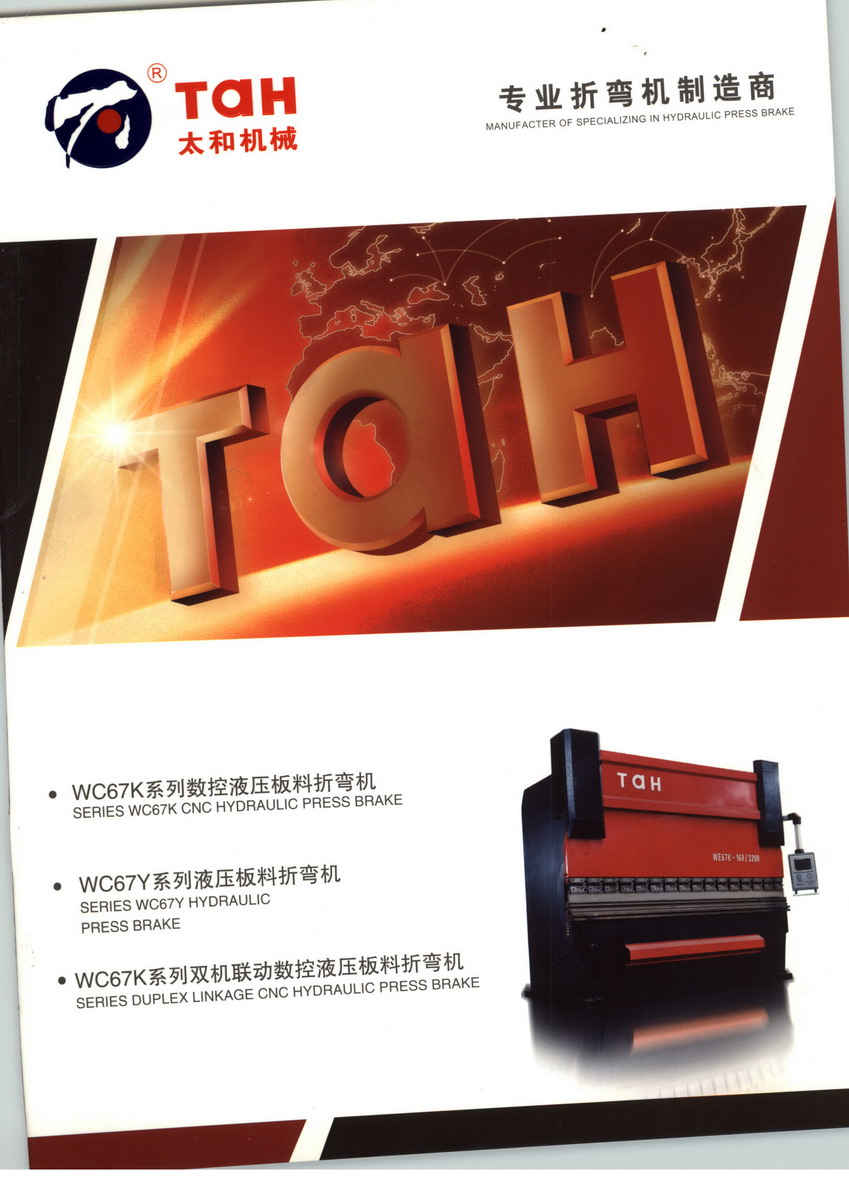 公司擁有自營進出口權,所有產品均獲出口許可證,生產的“太和牌”QC12K、QC12Y、Q11、QC11Y系列剪板機;WC67K、WC67Y系列液壓數控折彎機;W11S、W11卷板機;THW24S型材彎曲機暢銷全國,遠銷歐美,中東、南非、東南亞等三十多個國家和地區(qū)。所有產品廣泛適用于機械、飛機、汽車、電器、船舶、儀表、包裝、不銹鋼制品及裝潢等行業(yè)。