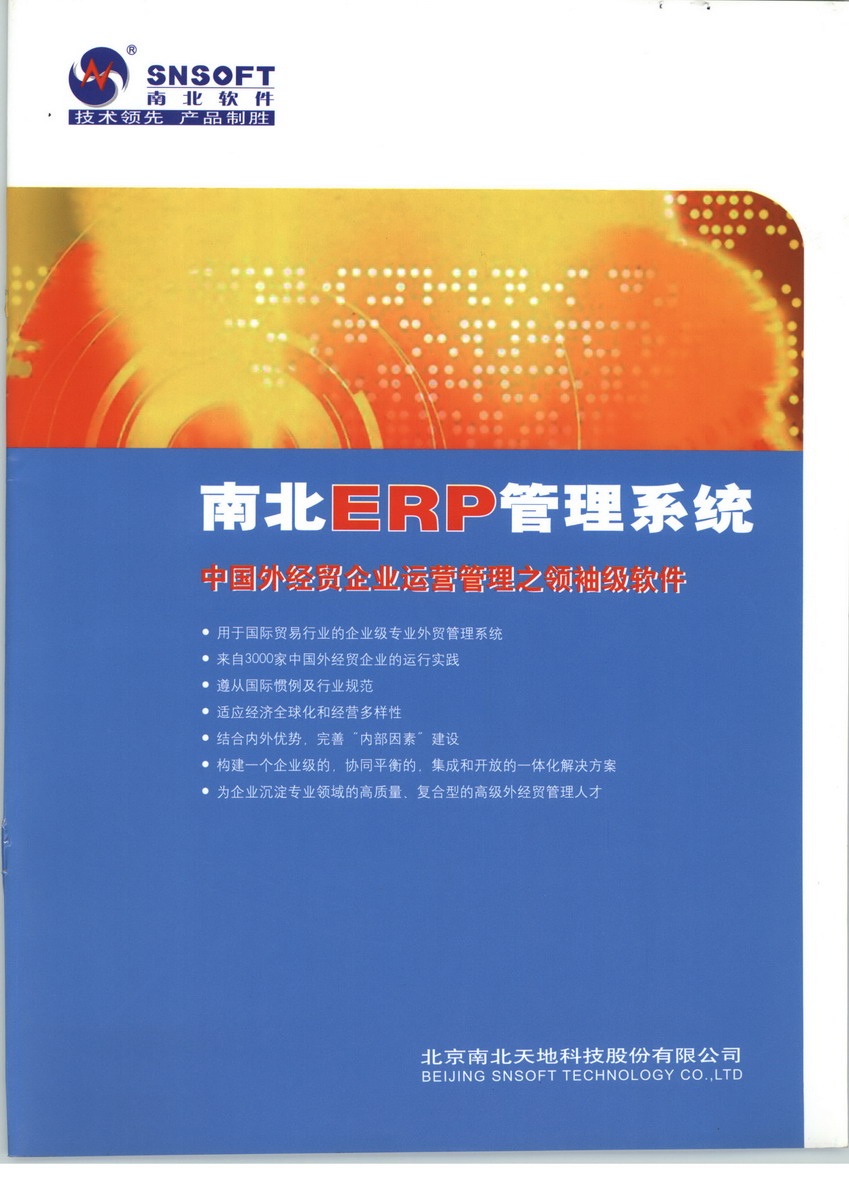 廈門南北公司成立于2008年,隸屬北京南北天地科技公司,廈門南北獨立運營,是中國***早的財務軟件廠商之一,是目前中國成長性的管理軟件廠商之一,同時也是中國外貿(mào)行業(yè)、出版行業(yè)管理軟件品牌。公司擁有300多人的專業(yè)研發(fā)與技術團隊,20多家全國分支機構,并是通過ISO9001認證的軟件企業(yè)。同時也是國家科技部“火炬計劃”、“國家重點新產(chǎn)品計劃”、“高新技術成果轉化”、“創(chuàng)新基金”等重大國家支持項目承擔企業(yè)。