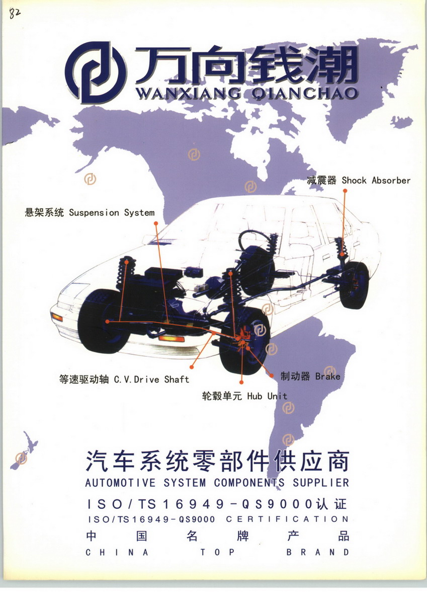 萬(wàn)向以汽車(chē)零部件制造和銷(xiāo)售為主業(yè),是中國(guó)汽車(chē)零部件制造代表企業(yè)之一。萬(wàn)向在國(guó)內(nèi)已形成6平方公里制造基地,與一汽、二汽、上汽、廣汽等建立了穩(wěn)定的合作關(guān)系,主導(dǎo)產(chǎn)品市場(chǎng)占有率65%以上。國(guó)外,在美國(guó)、英國(guó)、德國(guó)等10個(gè)國(guó)家擁有近30家公司,40多家工廠,海外員工超過(guò)16000人,是通用、大眾、福特、克萊斯勒等國(guó)際主流汽車(chē)廠配套合作伙伴,主導(dǎo)產(chǎn)品市場(chǎng)占有率12%。