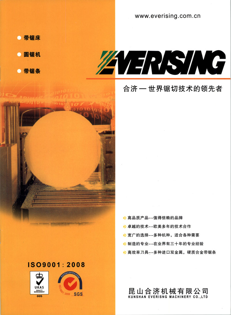 “EVERISING” 生產(chǎn)的帶鋸床作為世界著名品牌之一, 每年參加美國芝加哥IMTS、歐洲EMO、中國CIMT、Aluminium China 中國國際鋁工業(yè)展等諸多展覽會,獲得國際ISO-9001和CE認證。 產(chǎn)品自設(shè)計﹑制造﹑銷售至售后服務(wù)完全按照ISO-9001的標準與原則進行,產(chǎn)品亦充分考慮到操作的安全性與方便性及機械性能的高精度與高效率。