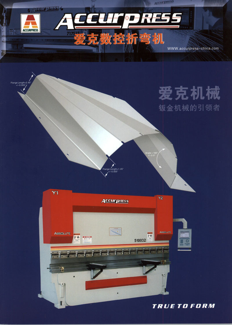 Accurpress 愛克(蘇州)機(jī)械有限公司是一家具有三十多年歷史的專業(yè)生產(chǎn)高質(zhì)量折彎機(jī)、剪板機(jī)的北美著名企業(yè)??偛课挥诿绹诿绹图幽么蠊矒碛形寮夜S和一家研發(fā)中心。愛克已在北美銷售了數(shù)萬臺機(jī)器,占據(jù)了40%以上的市場,連續(xù)十多年成為北美的銷量冠軍。2003年,愛克公司在蘇州太倉獨(dú)資成立了中國工廠,由此,開始在中國大批量生產(chǎn)高質(zhì)量的數(shù)控折彎機(jī)和剪板機(jī)。經(jīng)過幾年的不斷發(fā)展,愛克公司在中國取得了極大的成功,產(chǎn)品遍布各地、各行業(yè)。超過1500家用戶,3000臺愛克機(jī)器的安裝和使用就是廣大中國用戶對愛克的信任和支持。我們將秉承真誠合作、共同成長;科技創(chuàng)新、服務(wù)大眾的企業(yè)理念,繼續(xù)為廣大用戶提供行業(yè)中最優(yōu)產(chǎn)品和最佳服務(wù)。
