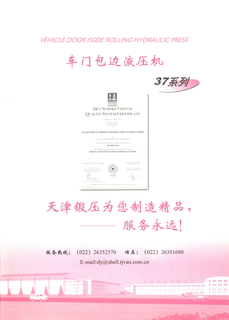 天津市鍛壓機床總廠是我國起步最早的企業(yè),現(xiàn)有固定資產(chǎn)2.4億元各類專業(yè)技術(shù)人員480人,是機械部大型骨干企業(yè)。自我廠自行設(shè)計國內(nèi)第一臺液壓機,開創(chuàng)了我國中小型液壓機生產(chǎn)歷史以來,目前擁有26個系列,300余品種,產(chǎn)品從80KN至5000KN,以形成年產(chǎn)1200臺各類液壓機的生產(chǎn)能力,居國內(nèi)同行業(yè)之首。1983年YT32-315四柱液壓機獲國家銀牌,1990年YT32-630/1030雙動力拉伸液壓機一舉榮獲同行業(yè)唯一的國家金獎另有部優(yōu)產(chǎn)品3項,市優(yōu)產(chǎn)品5項。產(chǎn)品廣泛適用于汽車制造、粉末冶金、金屬冷擠、輕工家電、化工機戒、航空航天、模具磨料、機戒制造等行業(yè),被國家指定為替代進口產(chǎn)品,行銷全國,產(chǎn)品出口到日本、荷蘭、東南亞等20多個地區(qū)和國家、市場占有率居全國同行業(yè)第一。