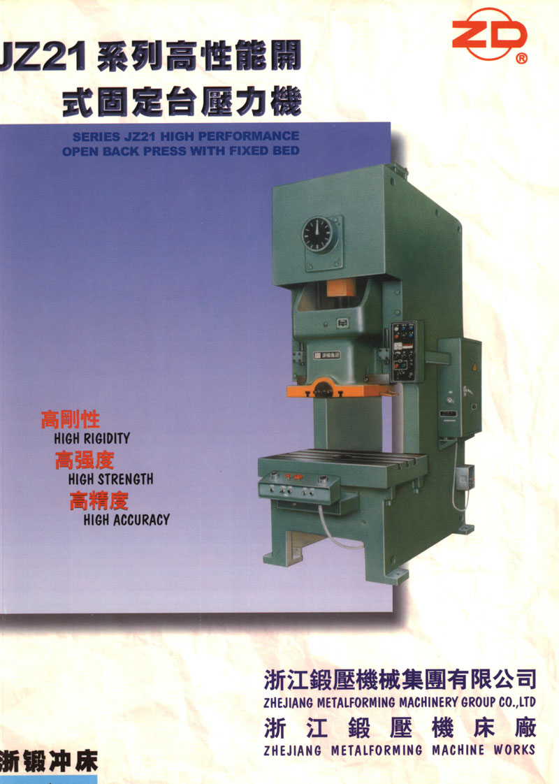 浙江鍛壓機(jī)床有限公司,原名浙江鍛壓機(jī)床廠,創(chuàng)立于1951年,系國內(nèi)鍛壓機(jī)械行業(yè)首批國家二級(jí)企業(yè)、國家重點(diǎn)高新技術(shù)企業(yè)、壓力機(jī)國家標(biāo)準(zhǔn)起草單位,是浙江省內(nèi)最大的鍛壓機(jī)械專業(yè)制造企業(yè),國內(nèi)開式壓力機(jī)的主要生產(chǎn)企業(yè)。公司總部占地350畝,擁有12萬多平方米的現(xiàn)代化廠房,是目前國內(nèi)最大的開式壓力機(jī)研發(fā)和生產(chǎn)基地。