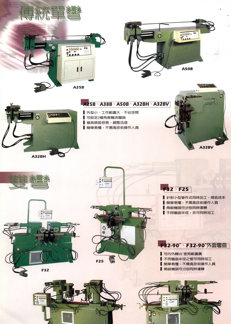 自1984年以來,專業(yè)的經(jīng)營,結(jié)合三十年的專業(yè)經(jīng)驗及不斷追求進步的經(jīng)營理念,已建立我們公司完整及規(guī)格化的產(chǎn)品生產(chǎn)線,以及在全國范圍的售前、售后規(guī)范化營銷服務網(wǎng)絡?,F(xiàn)今我們擁有18型至219型不同尺寸規(guī)格的管類加工設備,機型齊全,特別是在CNC型三維數(shù)控彎管機方面有著很強的競爭力,系列產(chǎn)品領(lǐng)先于國內(nèi)其它生產(chǎn)企業(yè),在國內(nèi)市場上享有較高的聲譽和市場份額。