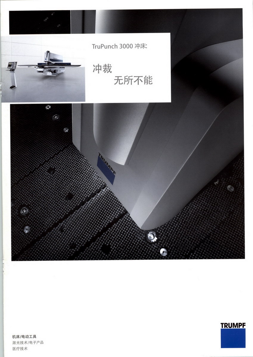 通快(中國)有限公司是通快集團(tuán)下屬的五十多個子公司之一,自2000年開始在中國的直接投資,先后在江蘇太倉與廣東東莞投資了四家生產(chǎn)化企業(yè),生產(chǎn)數(shù)控鈑金加工機(jī)床。通快集團(tuán)總部在德國迪琴根具有80多年的機(jī)床生產(chǎn)歷史,是全球制造技術(shù)領(lǐng)域的領(lǐng)導(dǎo)企業(yè)之一。從加工金屬薄板和材料的機(jī)床,到激光技術(shù)、電子領(lǐng)域,通快正以不斷的創(chuàng)新引導(dǎo)著技術(shù)發(fā)展趨勢。通快正在建立新的技術(shù)標(biāo)準(zhǔn),同時致力于開辟更新更多的產(chǎn)品給廣大用戶。通快(中國)有限公司注冊資本1608萬歐元,目前主要生產(chǎn)平面激光機(jī)床和配件,并將逐步開始數(shù)控激沖床和數(shù)控折彎機(jī)的生產(chǎn)。為實(shí)現(xiàn)通快機(jī)床在中國的迅猛發(fā)展,集團(tuán)投資2500多萬歐元興建一座面積逾40000平方米的現(xiàn)代新廠房,一期廠房于2009年8月正式投入使用,二期廠房也已于2011年11月投入使用。我們的目標(biāo)是將太倉總部建設(shè)成成為通快亞太區(qū)的生產(chǎn)、研發(fā)和服務(wù)中心,對通快在亞洲的銷售、生產(chǎn)、服務(wù)與應(yīng)用提供強(qiáng)有力的支持。通快(中國)有限公司同時負(fù)責(zé)通快全球產(chǎn)品在中國的銷售及售后服務(wù)支持業(yè)務(wù)。在上海、北京、東莞、成都及全國二十多個城市均設(shè)有銷售及售后服務(wù)網(wǎng)點(diǎn),并分別在上海、深圳與太倉設(shè)有備件倉庫。目前已經(jīng)在中國安裝的機(jī)床數(shù)量超過2000臺。