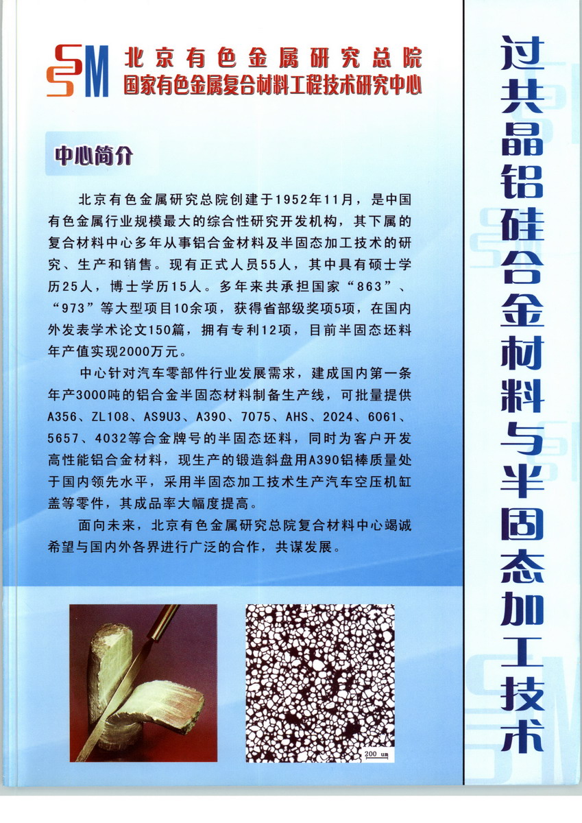 1992年4月開始籌建的國家級工程中心,1996年通過驗收。中心主要從事顆粒增強(qiáng)復(fù)合材料、有色金屬半固態(tài)加工技術(shù)、噴射成形技術(shù)、激光快速成形技術(shù)、先進(jìn)霧化技術(shù)等研究開發(fā)工作。