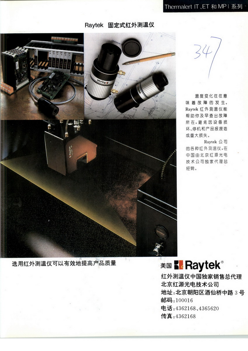北京紅源光電技術(shù)公司成立于1988年,是北京市的高新技術(shù)公司。經(jīng)過二十年的不懈努力,公司在產(chǎn)品質(zhì)量,生產(chǎn)能力,新品研發(fā)以及基礎(chǔ)建設(shè)等方面都得到了新的提高和發(fā)展,至今已成為集紅外光學(xué)鏡頭、紅外熱像儀設(shè)計(jì)生產(chǎn)以及銷售紅外產(chǎn)品為一體的專業(yè)公司,其產(chǎn)品已經(jīng)被國(guó)內(nèi)外的許多單位所采用。2010年1月通過ISO9001質(zhì)量管理體系認(rèn)證。公司自成立之日起,便利用自己的專業(yè)優(yōu)勢(shì)從事高科技產(chǎn)品的研制、生產(chǎn)和銷售業(yè)務(wù)。1989至1994年作為美國(guó)Raytek公司紅外輻射測(cè)溫儀在中國(guó)的銷售總代理,1995年與該公司共同投資成立了中美合資北京雷泰光電技術(shù)有限公司,為紅外測(cè)溫儀在中國(guó)廣泛應(yīng)用打開了道路。近年來,公司的業(yè)務(wù)有了較大的發(fā)展,在已經(jīng)能大批量生產(chǎn)各種固定式紅外鏡頭的基礎(chǔ)上,又先后研制出了用于改變熱像儀視場(chǎng)的變倍鏡頭、雙視場(chǎng)變換鏡頭、連續(xù)變焦鏡頭、近焦鏡頭等。目前公司已有能力為用戶設(shè)計(jì)、制作各種特殊用途和規(guī)格的紅外鏡頭。并利用公司在紅外鏡頭方面的實(shí)力,陸續(xù)推出了采用美、英、法等國(guó)生產(chǎn)的非制冷焦平面組件、配以不同的紅外鏡頭,組成了能用于安全監(jiān)控、夜間觀察等用途的手持式或固定式熱像儀。公司還代理銷售美國(guó)FLUKE公司和FLIR公司的測(cè)溫儀和熱像儀等產(chǎn)品,在國(guó)內(nèi)獲得大量用戶的好評(píng)。為了保證產(chǎn)品的質(zhì)量,公司建立了質(zhì)量保證體系,成立了質(zhì)保部門。購(gòu)置了環(huán)境試驗(yàn)設(shè)備、紅外鏡頭和熱像儀的監(jiān)測(cè)裝置等。