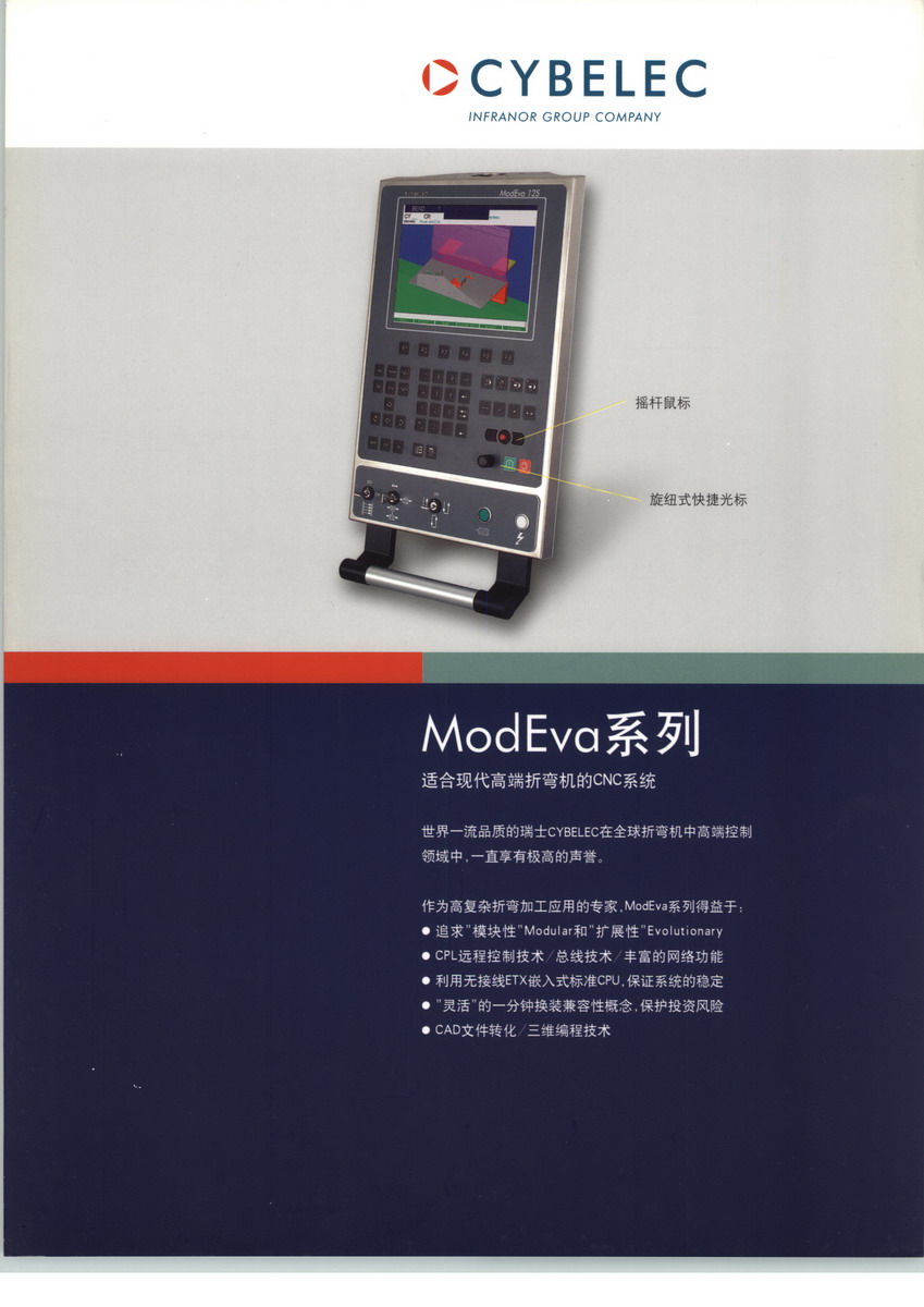 瑞士CYBELEC公司,成立于1970年,是一家專業(yè)開(kāi)發(fā)鈑金數(shù)控系統(tǒng)并在該領(lǐng)域享譽(yù)全球的領(lǐng)頭羊企業(yè)。從1970年開(kāi)始,CYBELEC公司開(kāi)發(fā)出全世界第一臺(tái)折彎?rùn)C(jī)用數(shù)控系統(tǒng),1978年推出了具有劃時(shí)代意義的世界第一臺(tái)通過(guò)微處理器控制的DNC系統(tǒng),使數(shù)控折彎?rùn)C(jī)從真正意義上實(shí)現(xiàn)了電液同步。直到今天,這種電液同步技術(shù)仍然作為一種標(biāo)準(zhǔn)模式被該行業(yè)所有機(jī)床制造商所采用。瑞士CYBELEC公司技術(shù)領(lǐng)先,實(shí)力雄厚,并不斷在技術(shù)上創(chuàng)新,為當(dāng)今世界鍛壓數(shù)控自動(dòng)化做出了重要貢獻(xiàn)。35年以來(lái),在全球已累計(jì)生產(chǎn)銷(xiāo)售40000多套CYBELEC數(shù)控系統(tǒng)。其產(chǎn)品主要面向:折彎?rùn)C(jī),折板機(jī),剪板機(jī),深拉深機(jī),彎管機(jī),柔性剪/折生產(chǎn)線.為更好的滿足中國(guó)客戶對(duì)CYBELEC產(chǎn)品的需求,提供及時(shí)、周到的售前售后服務(wù)和技術(shù)支持,并于2003年成立瑞士賽博克有限公司上海代表處,通過(guò)直銷(xiāo)模式以及本地供貨和本地技術(shù)支持體系,讓您百分百的放心。CYBELEC上海代表處主要業(yè)務(wù)范圍包括:-瑞士CYBELEC數(shù)控系統(tǒng),電機(jī)伺服系統(tǒng)及光柵尺的銷(xiāo)售-維修、技術(shù)咨詢及技術(shù)服務(wù)(產(chǎn)品的安裝,調(diào)試,使用培訓(xùn)和售后服務(wù)跟蹤;提供系統(tǒng)升級(jí),備件,增加功能和零件更換服務(wù))-從事數(shù)控機(jī)床改造等。
