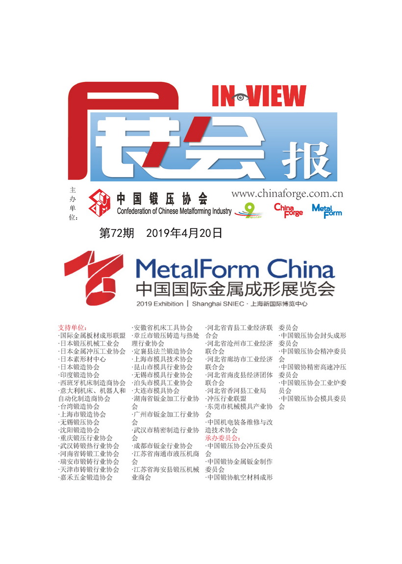 中國鍛壓協會的品牌展覽會―中國國際金屬成形展單年回到上海舉辦,主題是:“新時代、新技術、新未來”,誠邀貴公司參展!該展包含四個主題展: