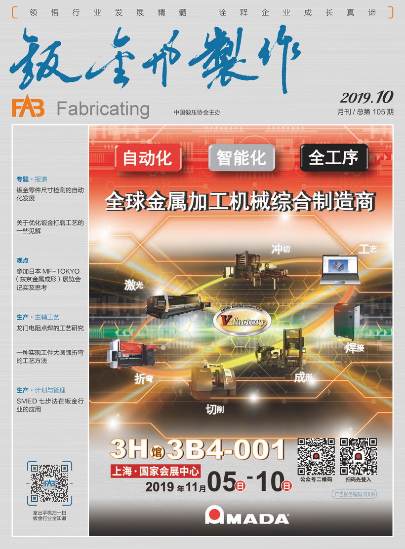 《鈑金與制作》雜志是中國(guó)鍛壓協(xié)會(huì)主辦的目前國(guó)內(nèi)惟一一本面向鈑金制作、管型線材加工行業(yè)的綜合性高端雜志。憑借中國(guó)鍛壓協(xié)會(huì)多年服務(wù)鈑金和管型線材行業(yè)的優(yōu)勢(shì),努力搭建供應(yīng)商與用戶企業(yè)間的信息平臺(tái),做好政府、高校、科研院所及企業(yè)間溝通的橋梁。