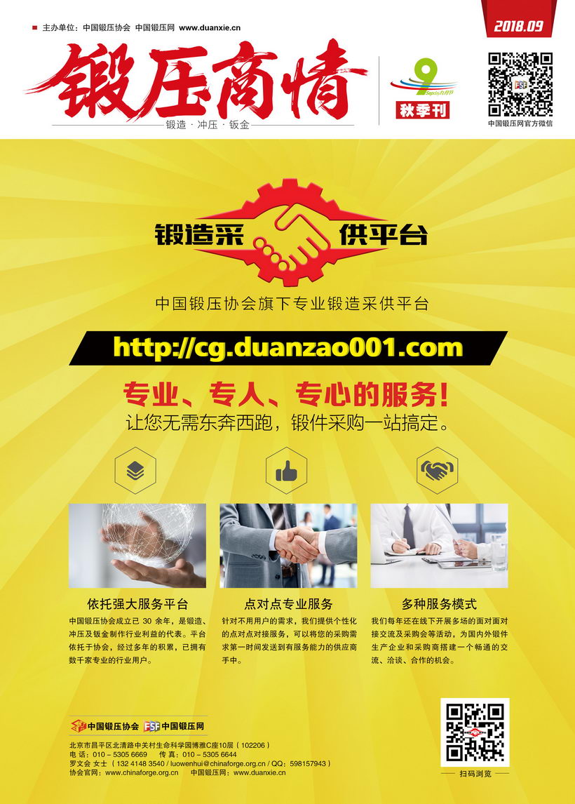 《鍛壓商情》是中國鍛壓網采取網上和網下同步宣傳的方式向全世界采購商介紹行業內的優秀生產商,所有宣傳全部為中英文雙語版本。