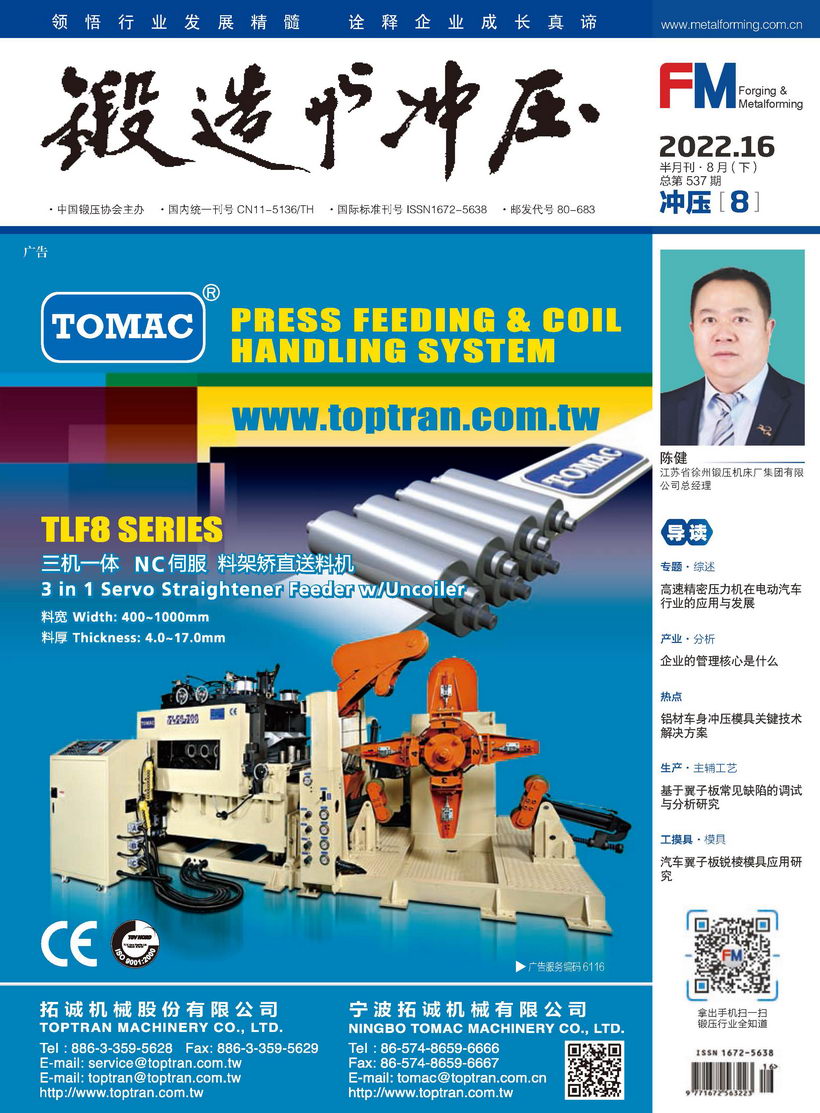 FM《鍛造與沖壓》由中國鍛壓協會主辦,是一本以市場需求為導向,集信息、技術、產品、市場與管理為一體的綜合性高端雜志。月發行量2.5萬冊,采取B2B發行模式,具有鍛壓行業針對性最強、覆蓋有效率最高的讀者群體,是中國鍛壓行業的領銜雜志媒體,受到國內外廣泛的認可。