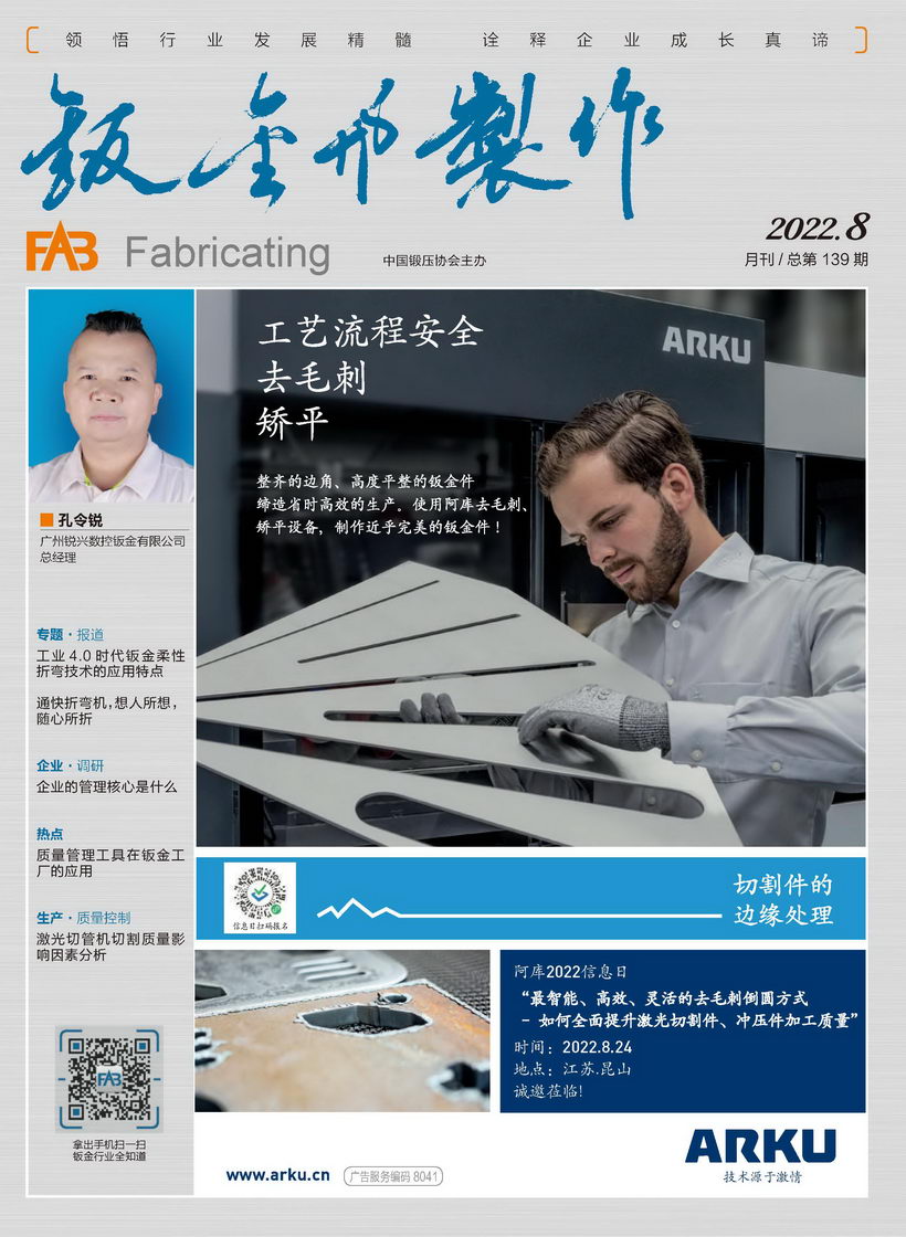 《鈑金與制作》雜志是中國鍛壓協會主辦的目前國內惟一一本面向鈑金制作、管型線材加工行業的綜合性高端雜志。憑借中國鍛壓協會多年服務鈑金和管型線材行業的優勢,努力搭建供應商與用戶企業間的信息平臺,做好政府、高校、科研院所及企業間溝通的橋梁。
