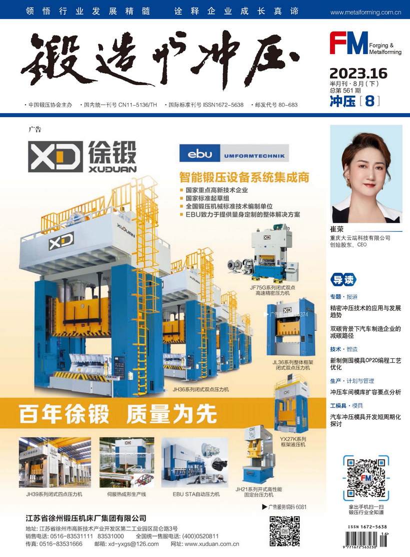 FM《鍛造與沖壓》由中國鍛壓協會主辦,是一本以市場需求為導向,集信息、技術、產品、市場與管理為一體的綜合性高端雜志。月發行量2.5萬冊,采取B2B發行模式,具有鍛壓行業針對性最強、覆蓋有效率最高的讀者群體,是中國鍛壓行業的領銜雜志媒體,受到國內外廣泛的認可。