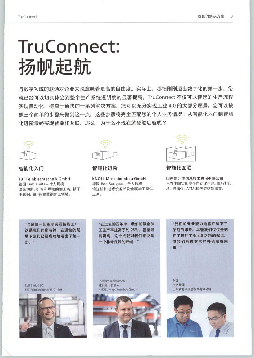 我們的任務在于進一步發展生產技術并實現數字聯網,使其更加經濟、精確而又面向未來。為此,我們希望更為高效地規劃生產及其上游和下游工作流程。我們由此努力打造未來工業世界。作為工業生產領域機床與激光器的市場及技術雙優企業,我們的各項創新幾乎影響著各行各業。我們的軟件解決方案為打造智能工廠鋪平道路,在工業電子領域實現高科技工藝。