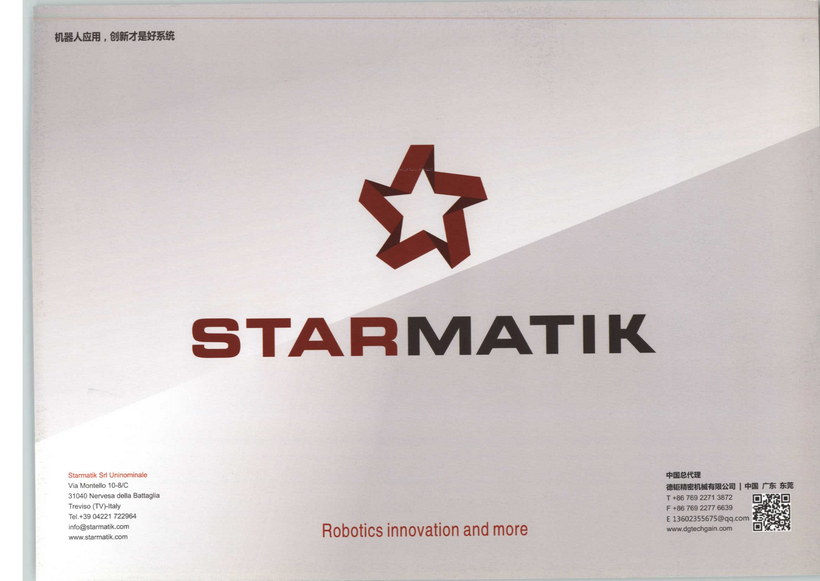 意大利Starmatik公司是公認的歐洲鈑金行業機器人自動化方面的領導性企業之一。業務范圍涵蓋機器人折彎、焊接、打磨、激光切割上下料、分揀、物料處理和特殊系統,尤其是機器人折彎領域,獨占歐洲70%的市場份額。公司自1996年成立以來,基于客戶特定需求,Starmatik公司向全球客戶提供了超過600個高品質定制化完整解決方案,廣泛用于鈑金加工的各種工藝。基于公司員工所掌握的技術Know-how ,Starmatik公司開發多種多樣的技術方案并完美實施,充分滿足客戶的特定需求。基于生產過程的深入分析,精確定位關鍵問題點,通過創新性的設計方案和精密制造與安裝調試,Starmatik創造出與眾不同的行業地位。感謝所有專業技術人員,讓Starmatik開發的項目多種多樣,能實現所有自動化特定需求。對項目的跟蹤,與客戶進行流程分析互動,解決識別精度的難題,并精確的調整到最佳狀態是Starmatik 獨有的特色。