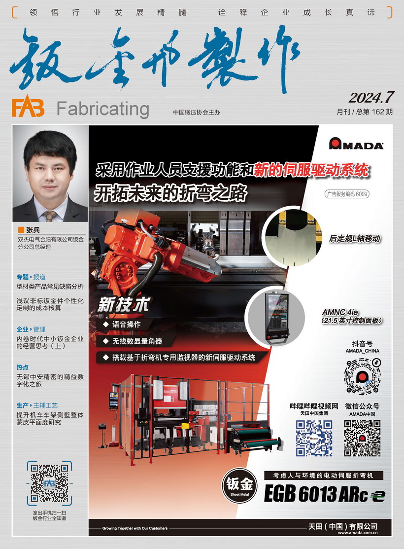 《鈑金與制作》雜志是中國鍛壓協(xié)會主辦的目前國內(nèi)惟一一本面向鈑金制作、管型線材加工行業(yè)的綜合性高端雜志。憑借中國鍛壓協(xié)會多年服務鈑金和管型線材行業(yè)的優(yōu)勢,努力搭建供應商與用戶企業(yè)間的信息平臺,做好政府、高校、科研院所及企業(yè)間溝通的橋梁。