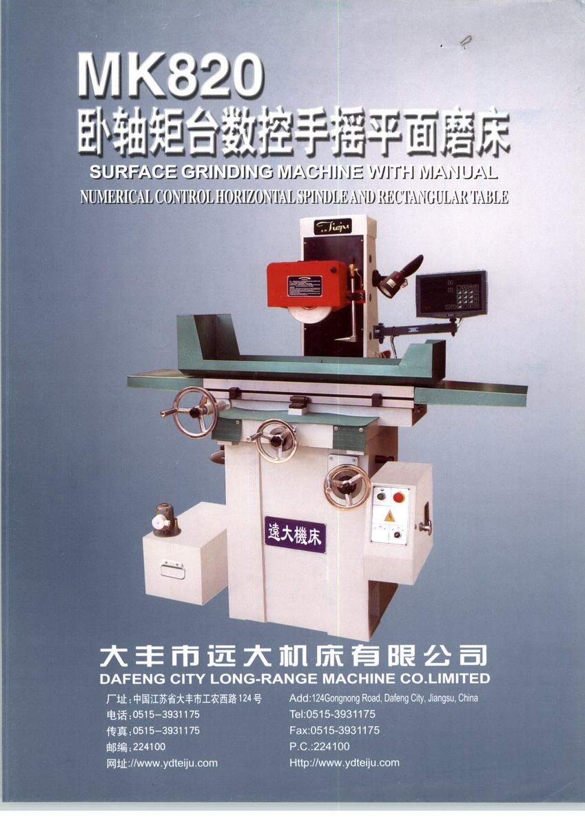 大豐市遠大機床有限公司,是專業生產“鐵駒”牌手動平面磨床的企業。公司具有出口產品質量許可證,通過ISO9001-2000國際質量體系認證,產品通過了國家機床質量監督檢驗中心的檢查驗收,是鹽城市“重合同、守信用”企業。公司有一批多年從事平面磨床設計、制造、檢測售后服務的專業技術人員,技術力量雄厚、生產工藝先進、檢測裝備精良,產品出口美國“MCLMA”等3家公司及歐美幾十個國家,暢銷國內二十多個省市。 “鐵駒”牌手動平面磨床,是本公司在結合臺灣磨床制造技術與經驗的基礎上,研發設計的專業榮譽產品,從材質研究、整機結構、機械原理、精度調整等方面,我們都在不斷的研發改進中,做到一叢不茍、精益求精。