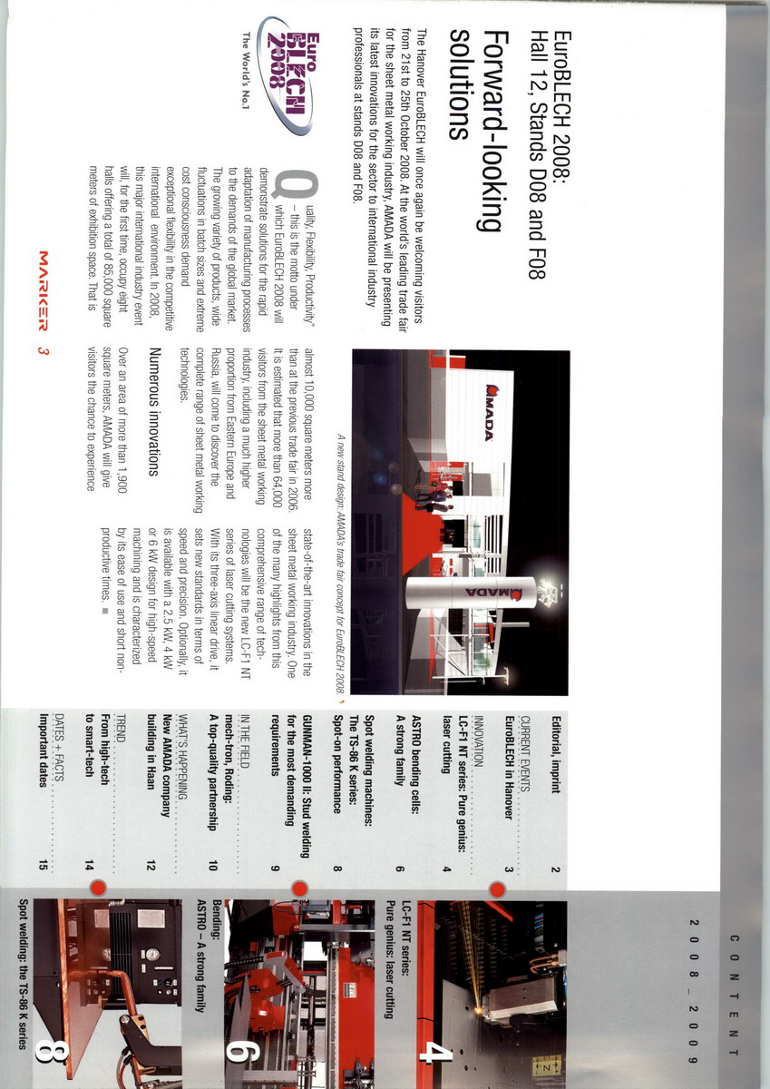 公司在世界各大洲設(shè)有83個(gè)分支機(jī)構(gòu),產(chǎn)品營(yíng)銷(xiāo)全球100多個(gè)國(guó)家和地區(qū),其生產(chǎn)鈑金加工機(jī)械的品種多 (達(dá)近千品種)性能之優(yōu),技術(shù)之先進(jìn),為世界鈑金加工機(jī)械的行業(yè)之首。公司在九十年代開(kāi)發(fā)制造的21世 紀(jì)智能化自動(dòng)鈑金加工中心,為世界鈑金行業(yè)的智能化加工開(kāi)創(chuàng)了一個(gè)先例,得到了日本最高的技術(shù)發(fā)明獎(jiǎng)勵(lì)。